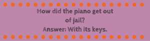 Best Piano Jokes!!! Posted byMusichaliceJune 9, 2021June 7, 2021Posted inUncategorizedTags:Brampton Ontario, Children music ideas, guitar lessons, Interesting lessons, music class, music history, Music learning, music lessons, music reading, music studio, Music teacher, piano lessons, Sandalwood Parkway, violin lessons Here are some of the funniest piano jokes! Let me know which one was your favourite one? Share this: Share on X (Opens in new window) X Share on Facebook (Opens in new window) Facebook Share on LinkedIn (Opens in new window) LinkedIn Email a link to a friend (Opens in new window) Email Share on Pinterest (Opens in new window) Pinterest Like this:Like Loading...